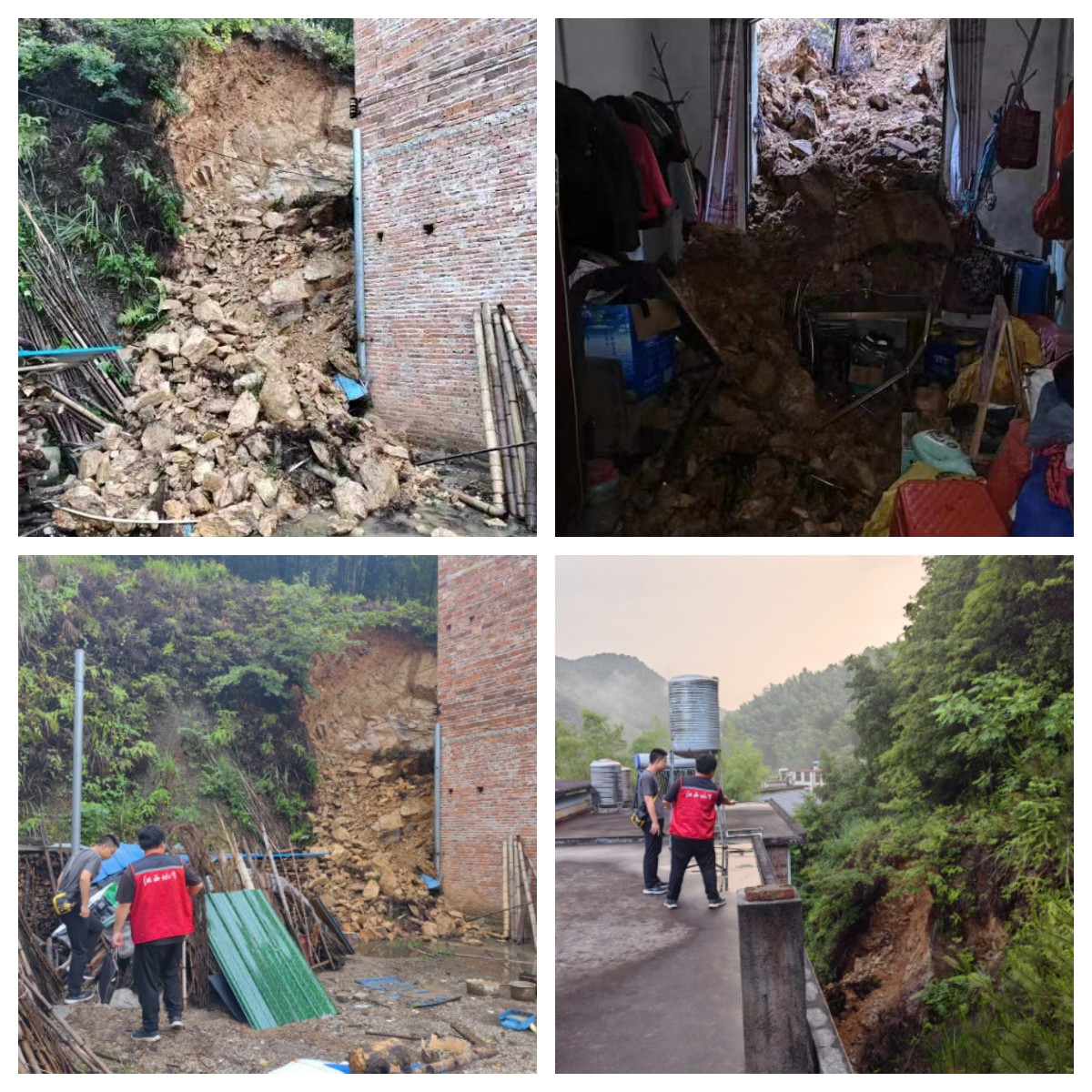 6月3日,吉村鎮(zhèn)突發(fā)短時(shí)強(qiáng)降雨。16時(shí)23分,災(zāi)害風(fēng)險(xiǎn)隱患信息報(bào)送員黃宗鵬巡查時(shí),發(fā)現(xiàn)張家然、蔡光楊、蔡光松等3戶農(nóng)戶屋后坡體不穩(wěn)定,有發(fā)生崩塌的危險(xiǎn),迅速向鎮(zhèn)領(lǐng)導(dǎo)報(bào)告。接報(bào)后,鎮(zhèn)政府于16時(shí)30分通知民主村村干部,要求立即轉(zhuǎn)移受威脅住戶。民主村兩委干部在接到轉(zhuǎn)移通知后,迅速協(xié)同村江壩小組干部,動(dòng)員3戶10人轉(zhuǎn)移,16時(shí)45分人員轉(zhuǎn)移完成。17時(shí)40分左右,3農(nóng)戶屋后坡體發(fā)生崩塌。崩塌體橫向?qū)捈s10米,縱向長(zhǎng)約6米,厚度約2米,崩塌體方量約120立方米,導(dǎo)致張家然房屋窗戶及室內(nèi)物品損壞。由于隱患發(fā)現(xiàn)與報(bào)告及時(shí)、轉(zhuǎn)移處置及時(shí),未造成人員傷亡。崩塌發(fā)生后,因崩塌點(diǎn)仍處于不穩(wěn)定變形中,鎮(zhèn)政府決定在現(xiàn)場(chǎng)拉好警戒線,樹(shù)立警示牌,禁止無(wú)關(guān)人員進(jìn)出,并安排群測(cè)群防員24小時(shí)監(jiān)測(cè)。